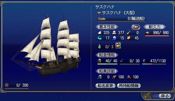 ※船の詳細は「サスケハナ」詳細と、ゲーム内のDelfinショップでご確認ください。