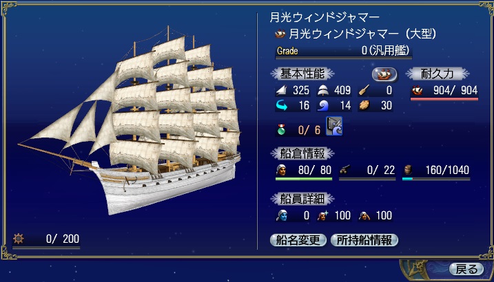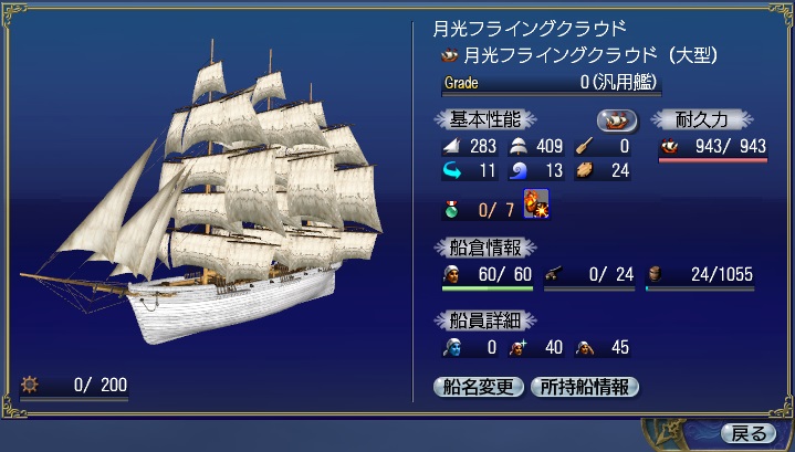 スキル効果:天文学[+3] 操帆[+3] 航行技術[+2] 装備効果:航行速度上昇[ランク8] |