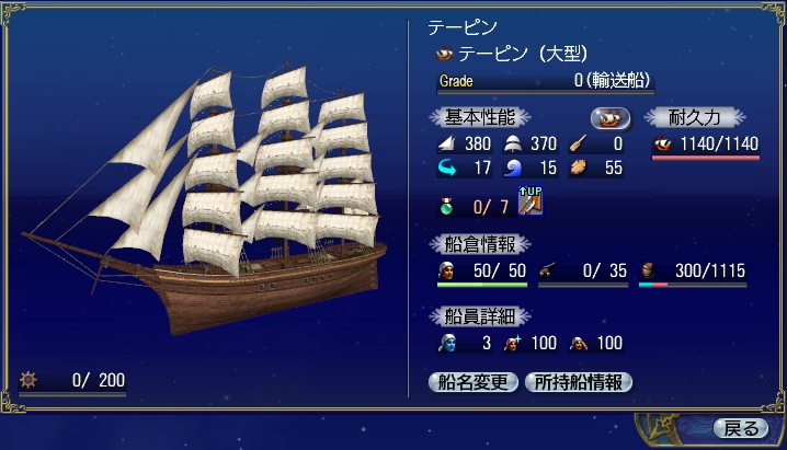 | 南蛮品高速輸送Special | 積荷の交易品が南蛮品および東方特選品のみの場合、航行速度が上昇する。 |