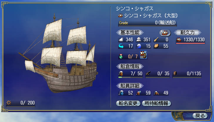 強力な交易性能を有するシンコ・シャガスと引き換えができる券。 ※船の詳細は下記と、ゲーム内のDelfinショップでご確認ください。 ※この引換券で交換した船には、オプションスキルが1つランダムで付与されます。 |